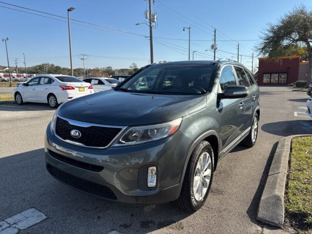 Recent Arrival! Local Trade, Fully Detailed, Auto-Dimming Mirror w/Compass & HomeLink, Blind Spot Detection System, EX V6 Touring Package, Infinity Surround Sound System, Low Profile Roof Rails w/Chrome Finish, Memory Driver Seat & Mirror Position, Panoramic Sunroof w/Power Sunshade, Power Folding Outside Mirrors, Power Liftgate w/Programmable Operation, Power Passenger Seat, Radio: Navigation w/8" Display, SIRIUSXM Traffic, UVO Audio w/eServices & Backup Camera Display, Ventilated Driver & Front Passenger Seats. 2014 Kia Sorento EX Sage Green